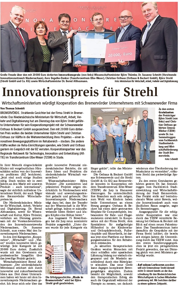 "Innovationspreis für Strehl" Bremervörder Zeitung