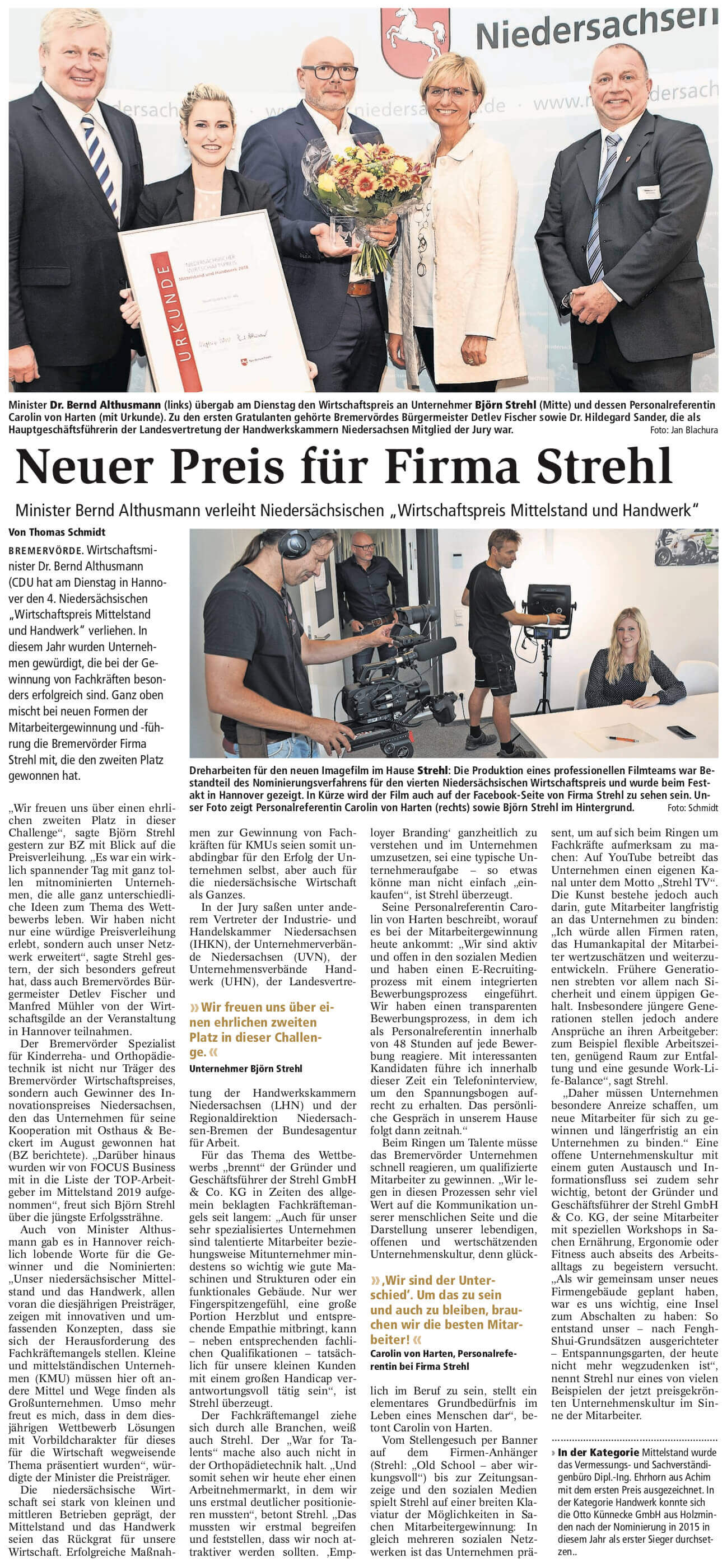 "Neuer Preis für Firma Strehl" Bremervörder Zeitung